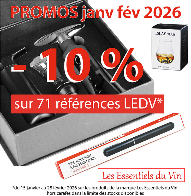 Pour bien commencer l'année : 10 % de remise sur les accesoires exclusifs Les Essentiels du Vin jusqu'au 28 février 2026. RV dans l'espace pro.